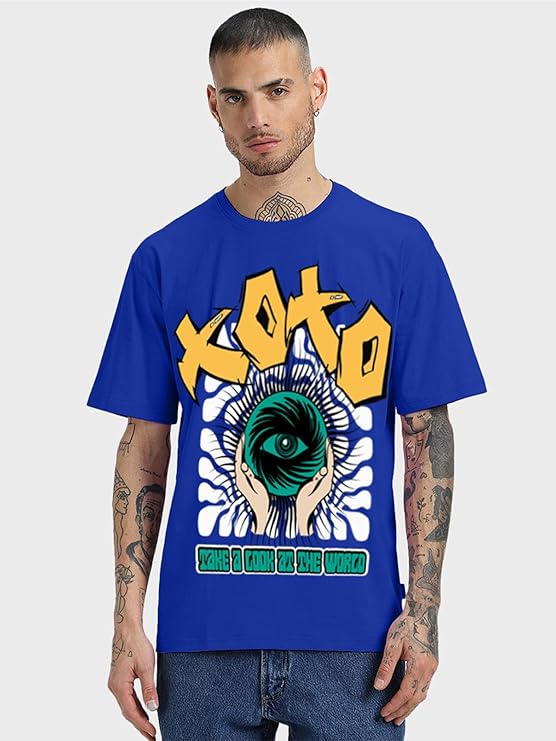 Combo Pack Of 3 -100% Pure Cotton Oversized Baggy Fit Half Sleeve Printed Round Neck Multicolor Drop Shoulder T-Shirt for Men & Boys